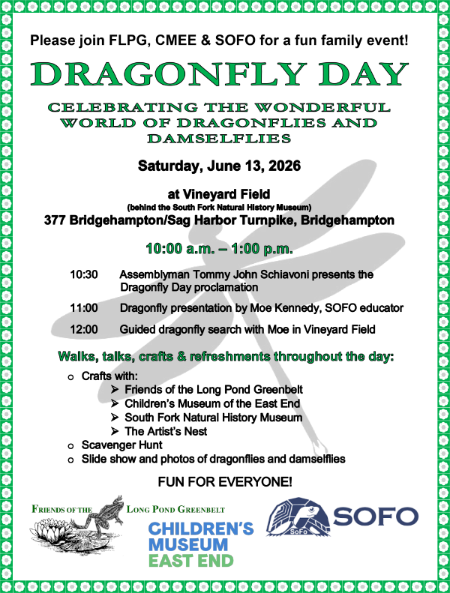 Join Friends of the Long Pond Greenbelt, the Children's Museum of the East End, and SOFO in celebrating the wonderful world of dragonflies and damselflies. Assemblyman […]